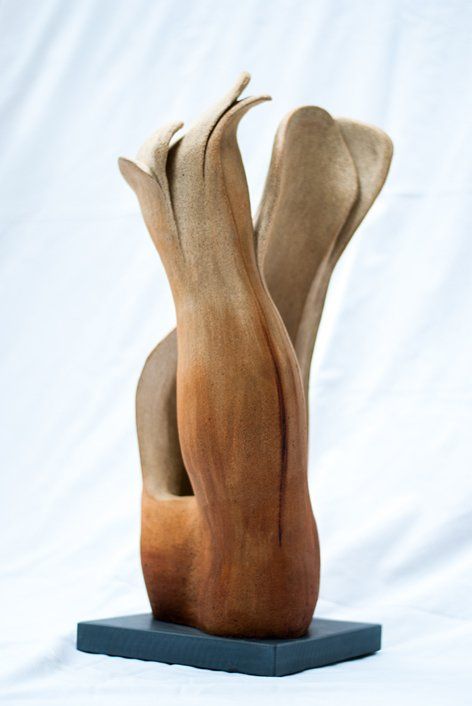 Working mainly in clay, plaster and wood, Jean’s sculptures act as a reflection of her experience or interests at the time. Beginning with an open mind, rather than a preconceived idea, Jean will follow the material to suggest the form, occasionally sketching during the creation to determine the direction of balance.